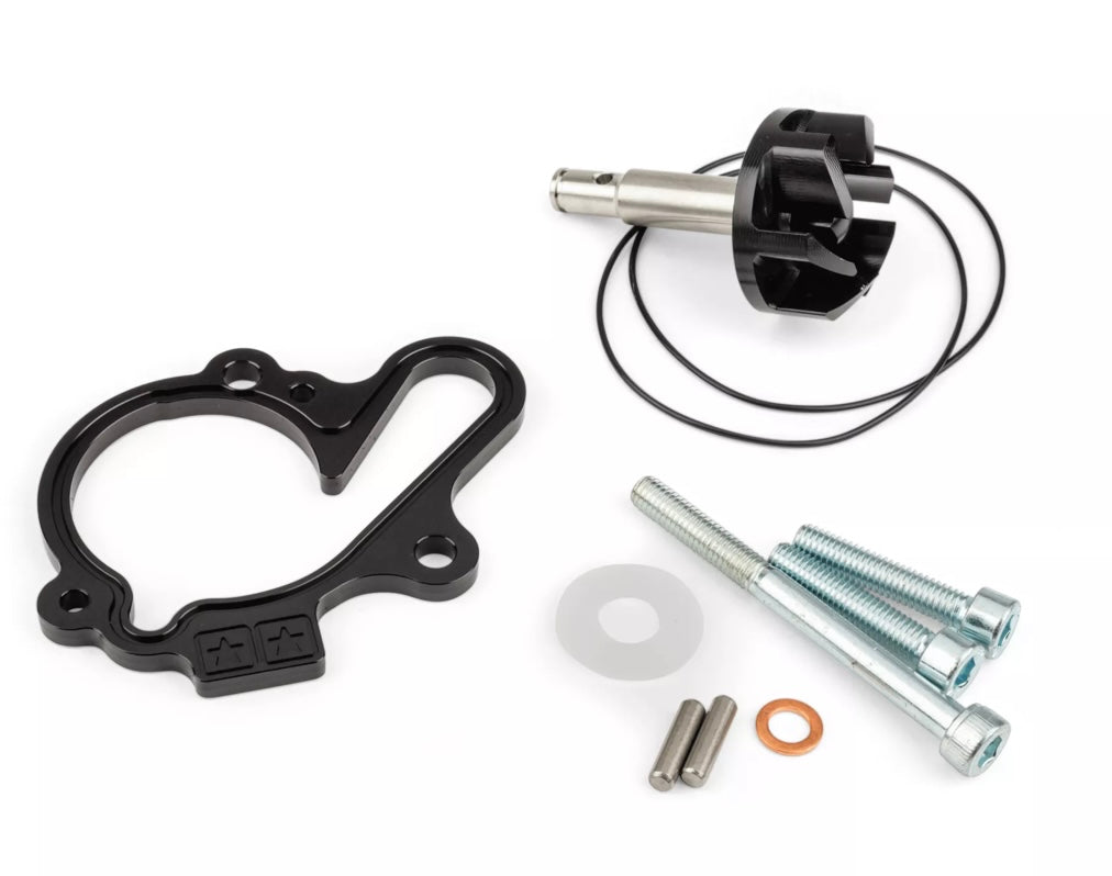 - Amélioration de la capacité de refroidissement : La turbine de pompe surdimensionnée, usinée CNC et anodisée, accroît la capacité de refroidissement, crucial pour les petits radiateurs installés d'origine sur les AM6.
